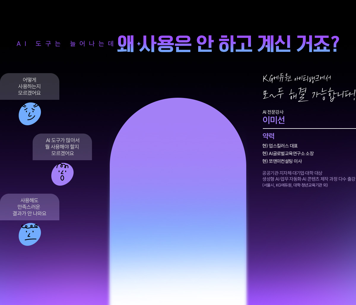 | 문자메시지 발송 | KG모빌리언스 | 이벤트 항목, 고충처리 이력, 공지 및 문의 사항 전달 | 학생 이름, 이메일 주소, 휴대폰 번호 | 회원 수료 및 환불 후 6개월까지 |